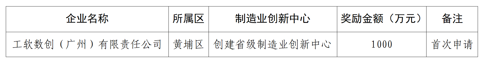 2024年广州市促进工业和信息化产业高质量发展资金(制造业创新中心)拟奖励项目情况表